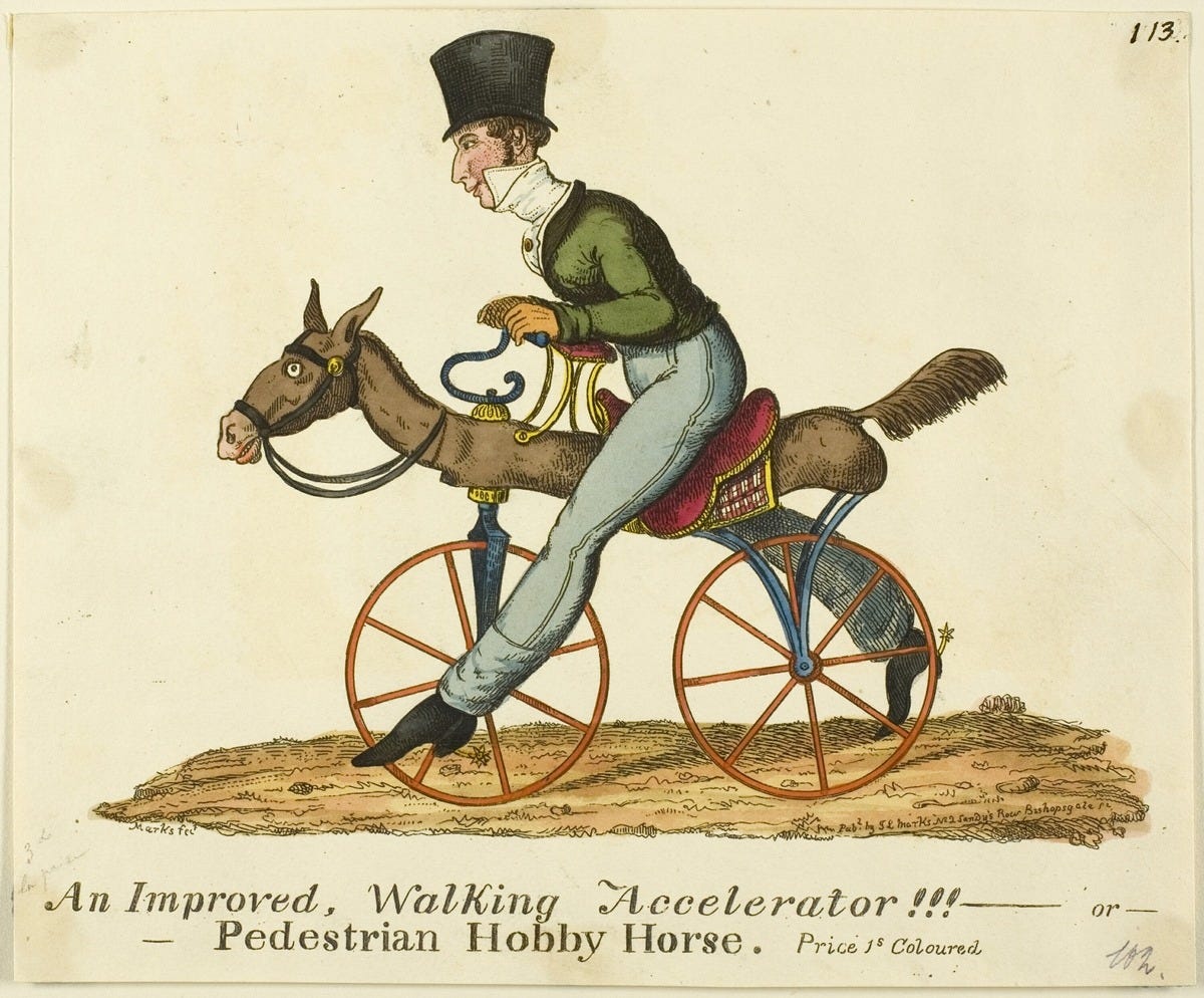 Balance bikes were actually the first bicycles around. They were literal hobby-horses, also variously called running machines and dandy horses. These evolved into the pedaled bicycles we now know. Surprisingly, balance bikes did not become starter bikes for people learning to ride bicycles. Instead, training wheels, invented in the 1950s, became the most common learning scaffolds for bikes for the last six decades. Only in the last decade or so have we rediscovered balance bikes and how they are actually better in terms of helping us learn how to balance and countersteer. There’s research that shows us how training wheels actually hinder learning because they lop off our body’s feedback loop.